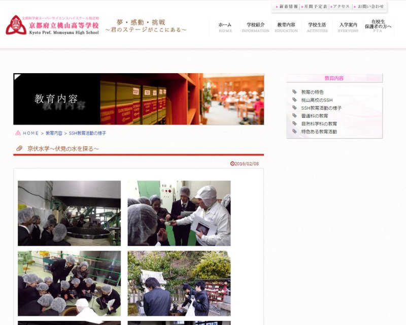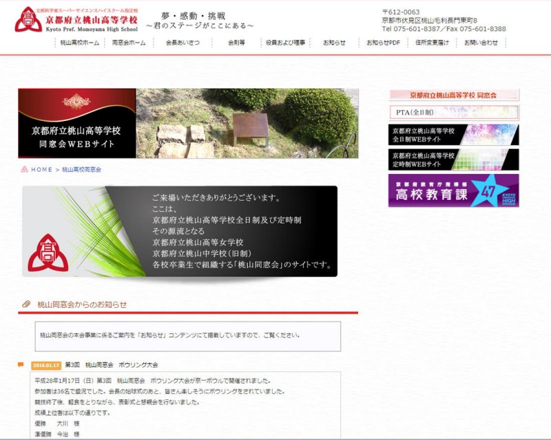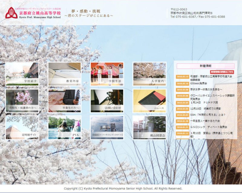 桃山高校は、豊臣家、徳川家のゆかりの城、伏見城から程近いため、貴校の校舎工事の際には、校舎跡地から伏見城の金瓦や大名屋敷の柱石等が出土するという、伏見桃山時代に思いを馳せることの出来る学び舎です。