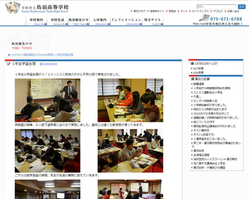 創立100周年を越える鳥羽高校は部活動も盛んな学校です。ちょうど制作時に鳥羽高校が第97回全国高等学校野球選手権大会の京都府代表となり、甲子園で活躍した事はまだ記憶の新しいところです。
