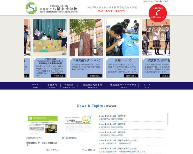 支援学校の特徴をスライダーで表紙し、制作後の更新作 業をお客さまの方で行いやすい簡易更新機能や、お客様のほうで更新がし易いようにシステム構築いたしました。