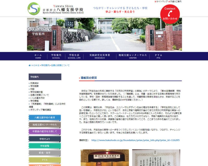 京都府立京都八幡高等学校南キャンパスと同じ敷地内にある府立特別支援学校。