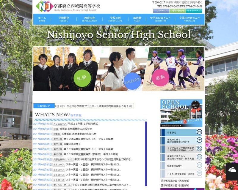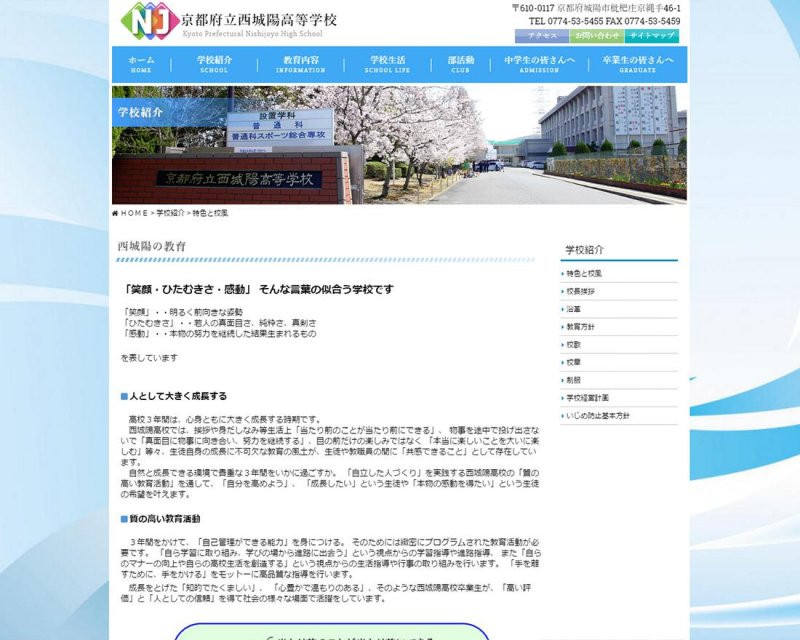 校風である「笑顔・ひたむきさ・感動」が伝わるような明るい雰囲気で、サイト専用の学校ロゴを加え、ポップなイメージに仕上げました。