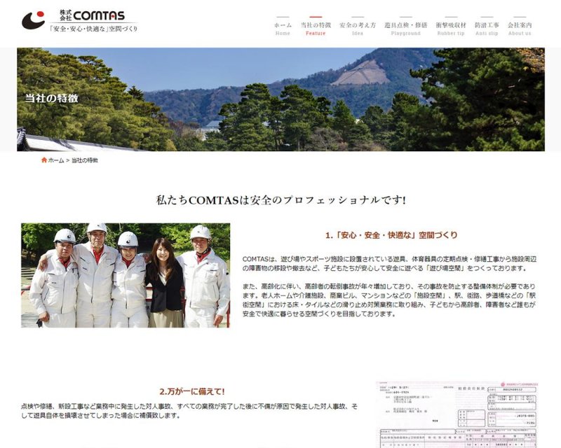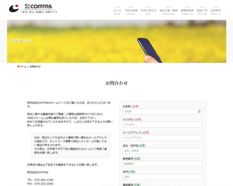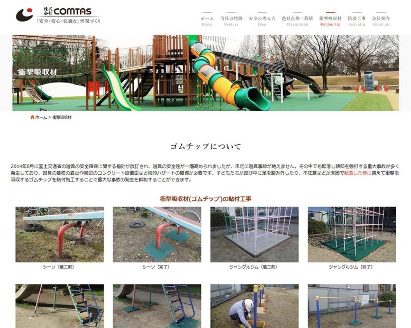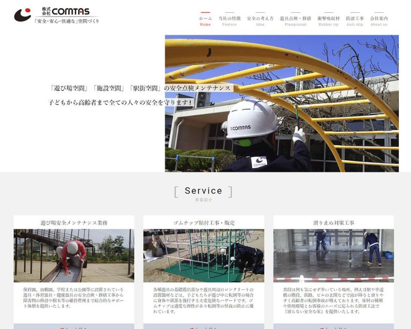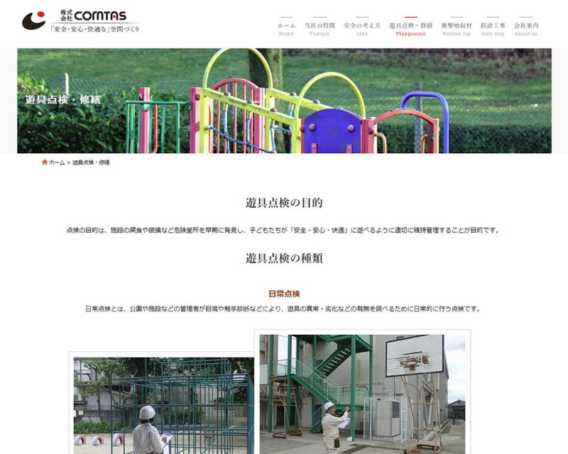 遊び場やスポーツ施設に設置されている遊具、体育器具の定期点検・修繕工事などをされている株式会社COMTAS様。今回は全面的なサイト制作として、CMS(WordPress)による制作をさせていただきました。