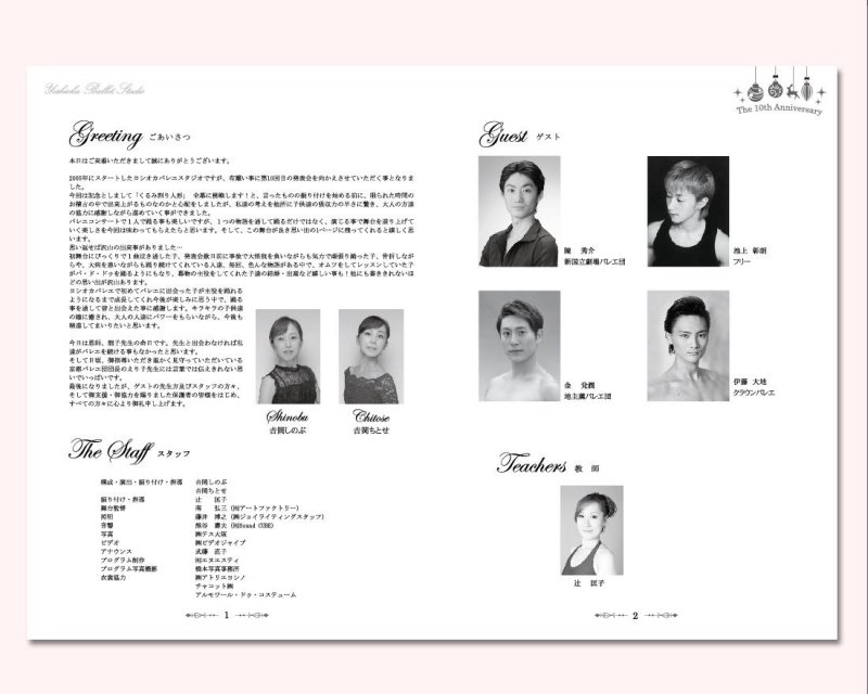 バレエスタジオ発表会パンフレット。今回は10周年の記念発表会になるそうです。