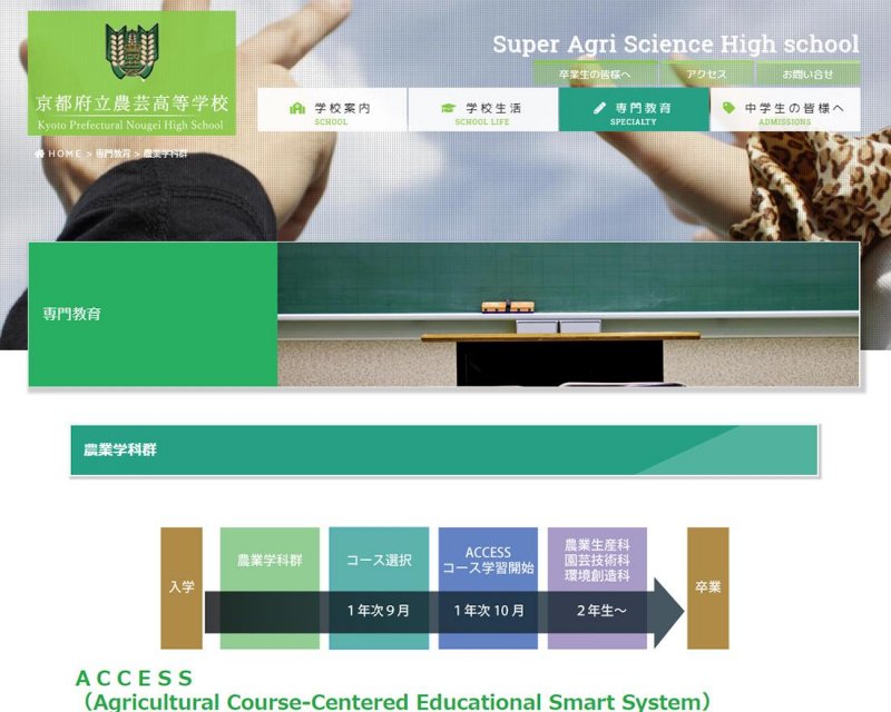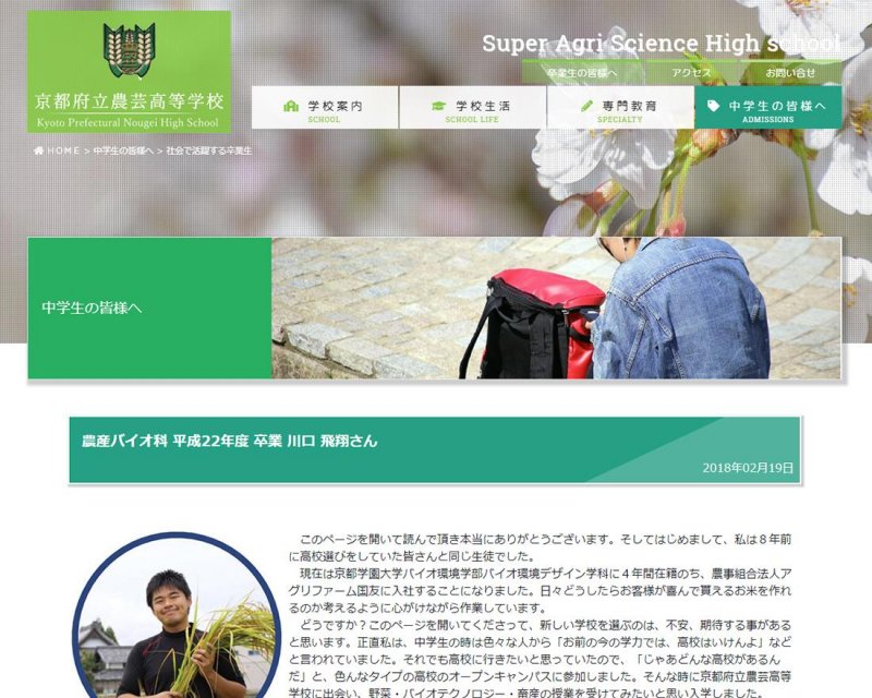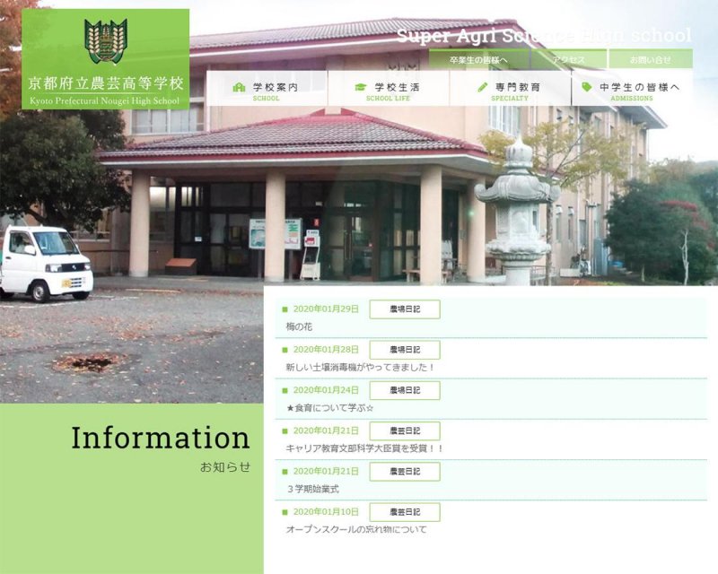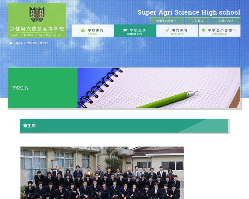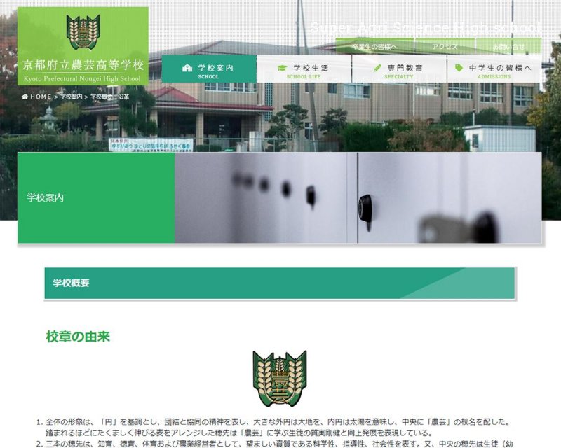 京都府南丹市園部町南大谷にある農芸高等学校。緑に囲まれた土地で農業経営者を育てる教育を推進されています。その「緑」を基調に制作させていただきました。