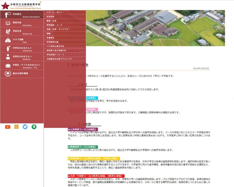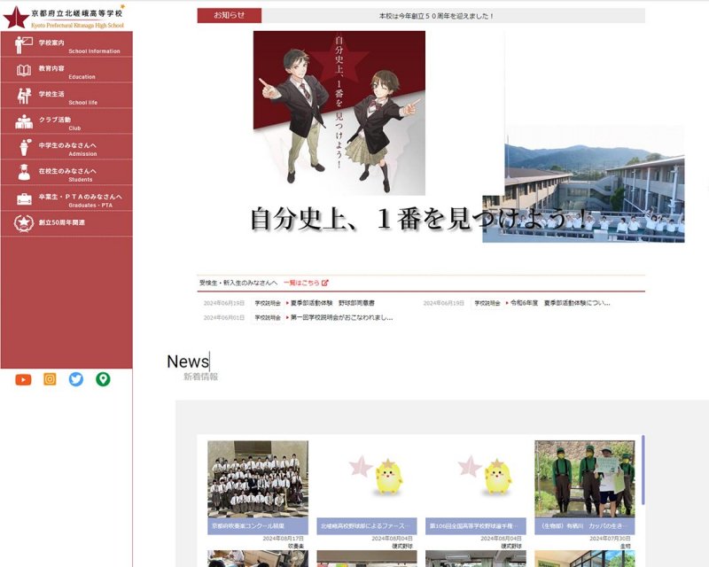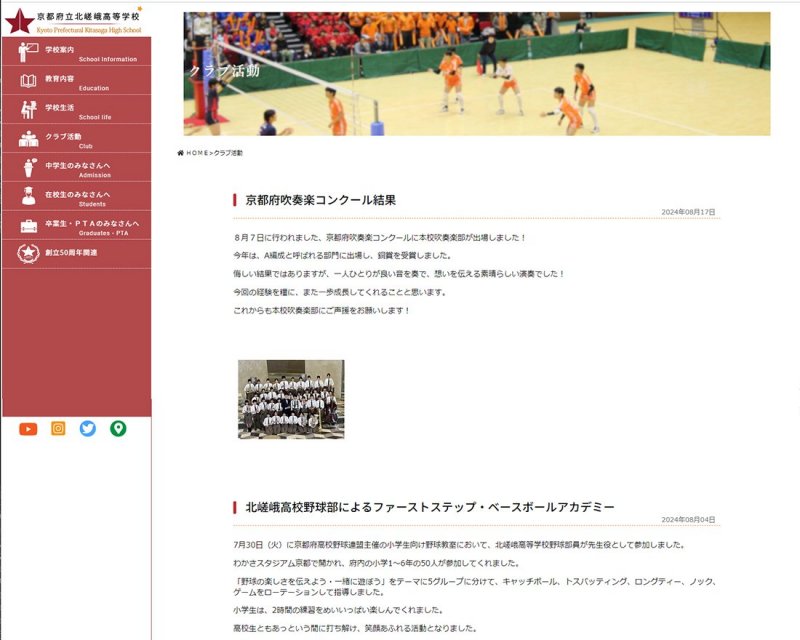 Movable Type(CMS)機能を使って既存メニュー以外の子サイトを取り扱えるようにしております。時期により「学校案内」や「クラブ特設」などを設定出来ます。なお、サイトデザインは北嵯峨高校の先生からいただいたものを基本とさせて頂いております。