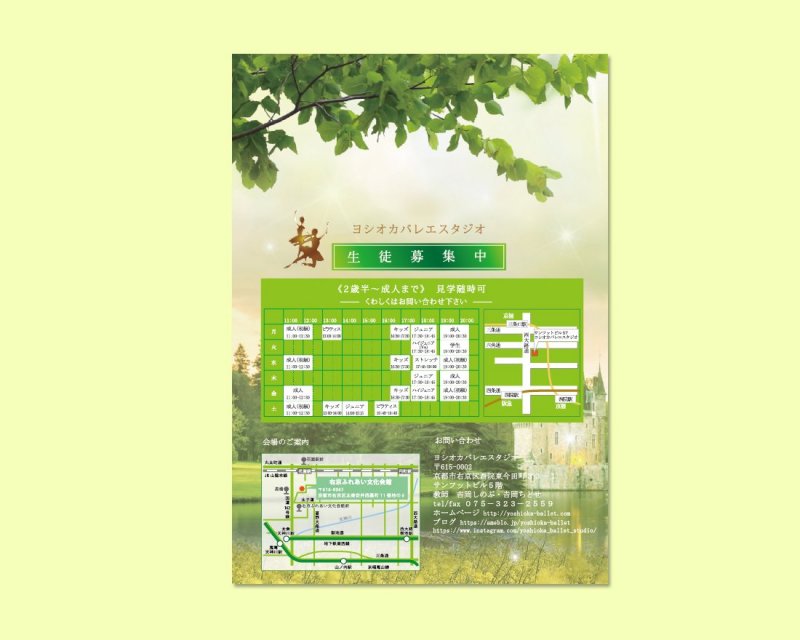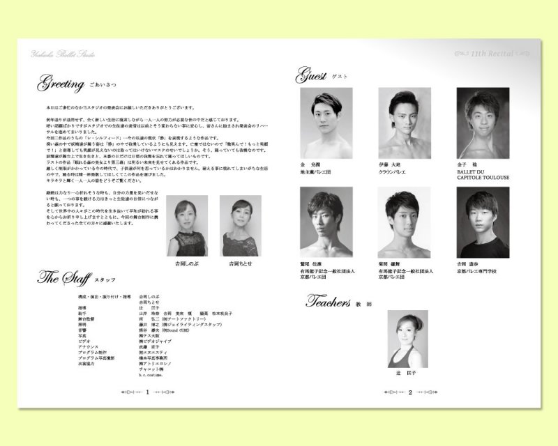 パンフレット制作の場合はデザイン案を数件提出させていただき、そこからいくつか選んでいただき仔細の調整を進めて行きます。そのため時間がかかるのですが、何処かのテンプレートではないオリジナリティを認めていただけたら幸いです。ヨシオカバレエ様とはかなり長くお付き合いをしていただき感謝しています。