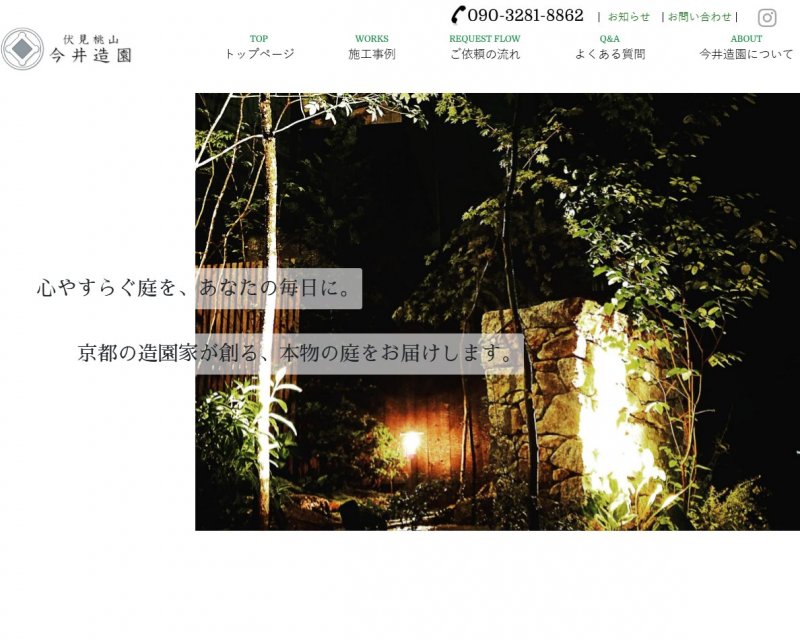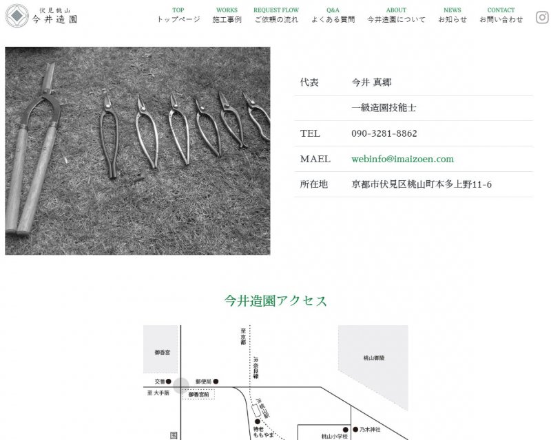 お話を伺うと、先代から続けておられる庭師さんで、会社などには縛られないで「一級造園技能士」の資格を持たれて活動されているようです。ホームページは初めてということでしたので、いくつかご提案をさせていただきながら制作をすすめました。特に驚いたのがホームページ公開とともに「Googleマップ」を設定したのですが、すぐさま口コミがあり、それも剪定について非常に満足されている文章でした。今後、さらにお仕事に対してホームページが有益なものであれば、と思っております。