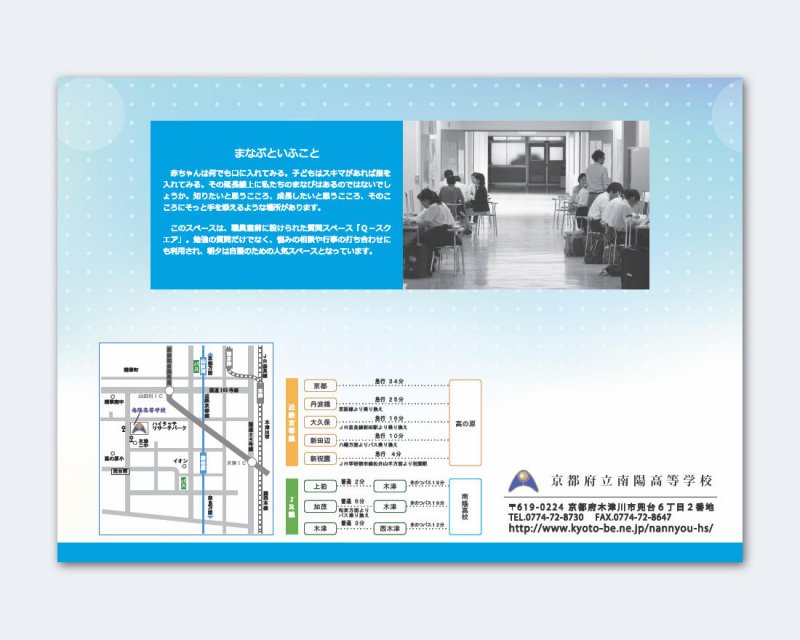京都府立京都八幡高等学校南キャンパスと同じ敷地内にある府立特別支援学校。