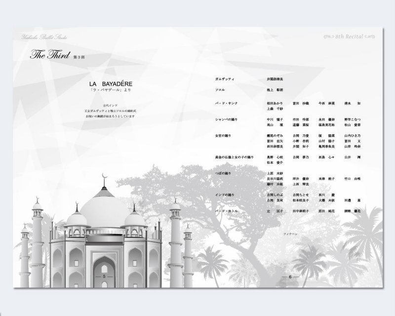 今回の演目は「ラ・バヤデール」、表紙では象徴的な古代インドのお城と象を配置しました。