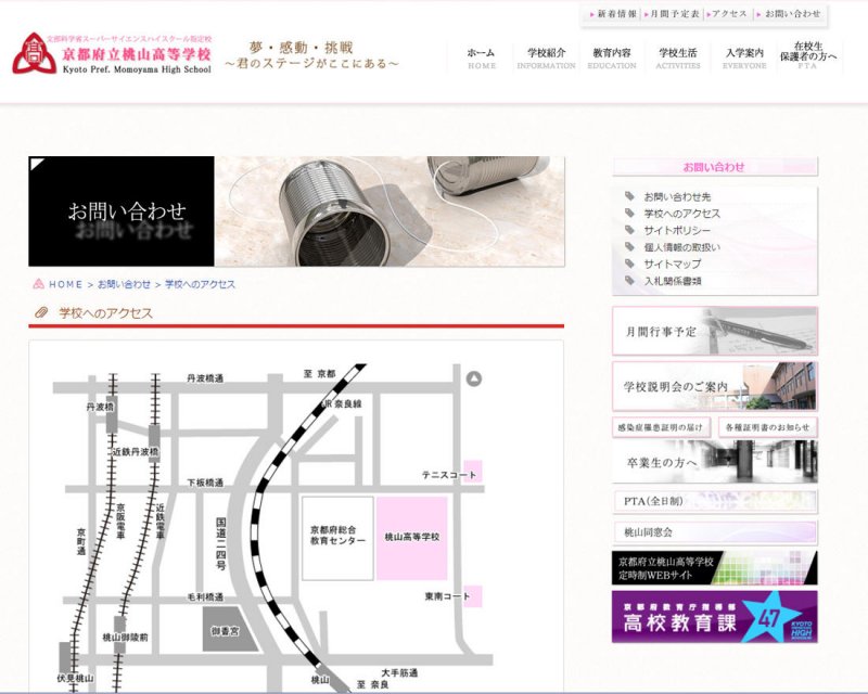 桃山高校は、豊臣家、徳川家のゆかりの城、伏見城から程近いため、貴校の校舎工事の際には、校舎跡地から伏見城の金瓦や大名屋敷の柱石等が出土するという、伏見桃山時代に思いを馳せることの出来る学び舎です。