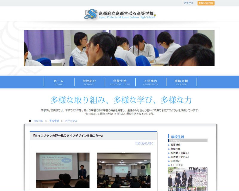 イメージカラー青を基調とした爽やかな雰囲気のデザインに仕上げました。今回、同窓会サイトも一緒にご依頼頂き、高校サイトと統一感のあるデザインとなっています。